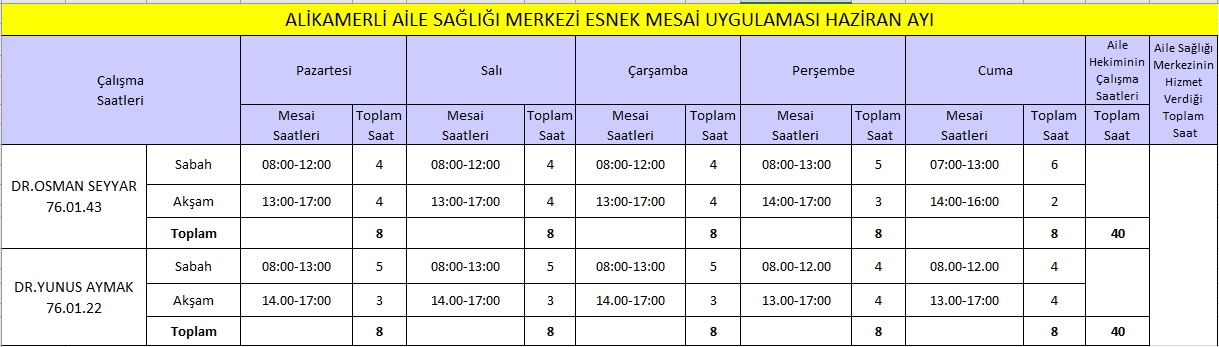Çalışma Saatlerimiz